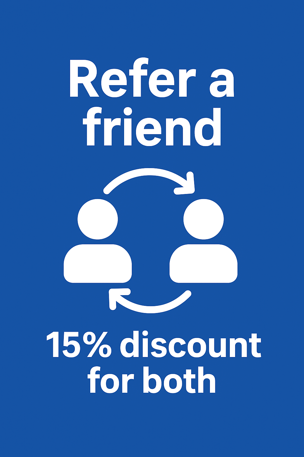 Details: The discount code must be presented at the time of the job and before payment. The code cannot be applied to jobs that have already been completed and paid for. The discount code for the referrer is only valid after the referred has paid for their invoice. There is no cash value for the discount code and it is not transferable. The discount code is only valid for 3 months after the form has been submitted. Referred people living or working at the same address are not eligible for multiple discounts.